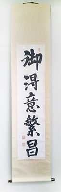 お正月の松の内に掛ける掛け軸です。商売繁盛ではなく、顧客繁盛を願っており、それが引いては当社の繁栄に繋がるとの考えです。